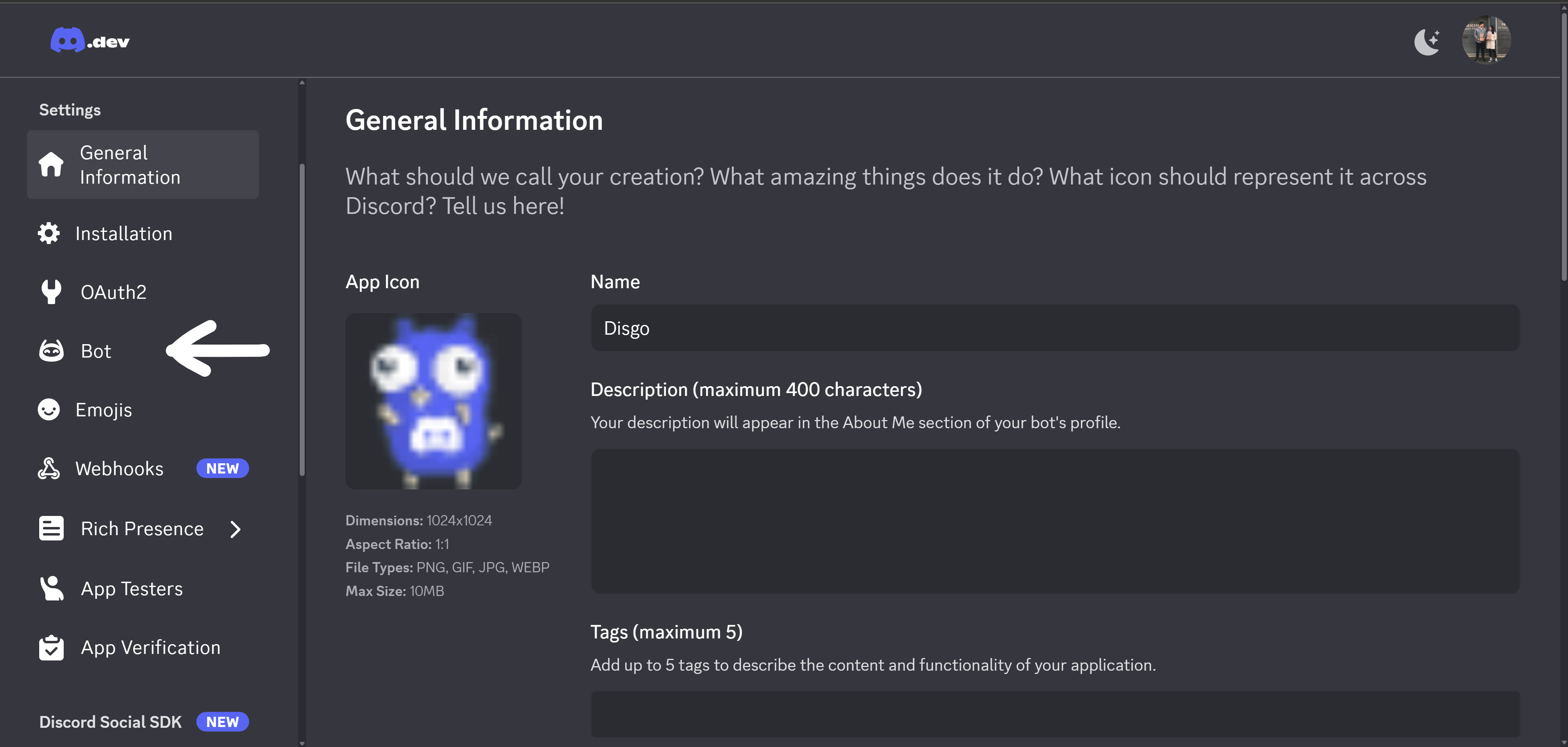 But before you can code a bot, you need to create a Discord Application (i.e. Discord Bot)